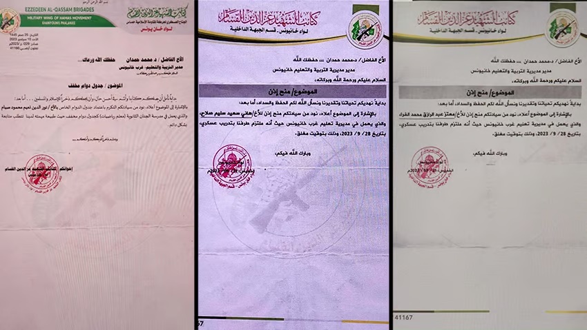 Tra le richieste che emergono nelle lettere, secondo la traduzione pubblicata da Ynet News, vi è “ la richiesta di approvazione per il fratello Nur Al-Din Naim Mahmoud Siyam, che lavora presso il liceo Jinan come insegnante di matematica, poiché è il nostro coordinatore della missione”. In altre lettere scritte in arabo, è richiesto l’esonero di due membri del personale scolastico per un’esercitazione del 28 settembre, alcuni giorni prima dell’attacco terroristico nel sud di Israele.