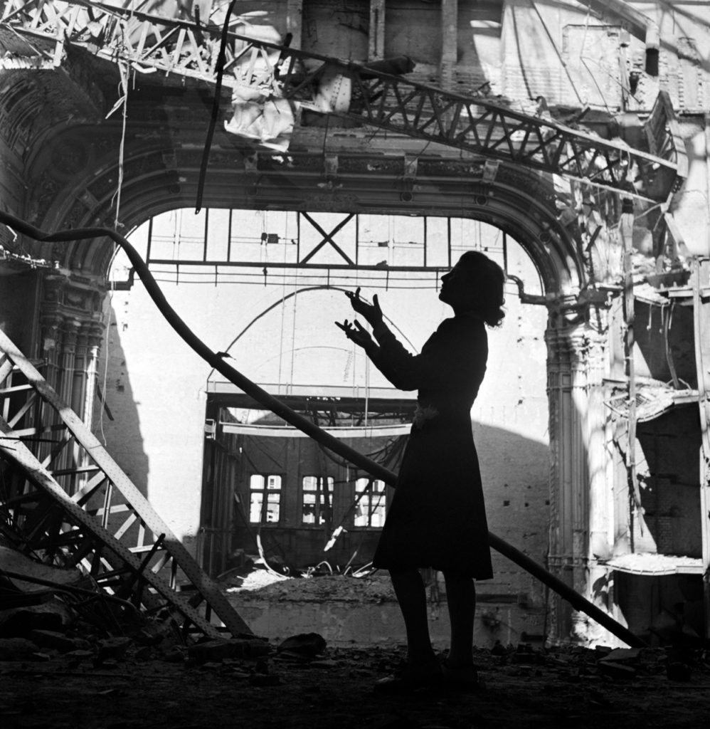 Opera singer Irmgard Seefried sings an aria from Madame Butterfly amongst the ruins of the opera House.