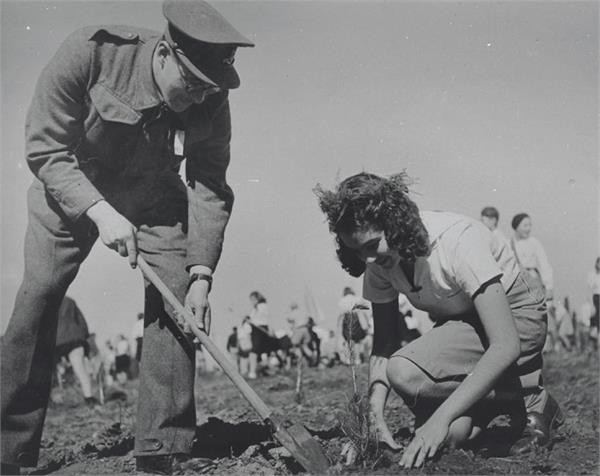 Foto: Gerusalemme 1951, Bambina che mette nel terreno una piantina durante Tu BiShvat. Photo credit – Werner Braun, KKL-JNF Photo Archive