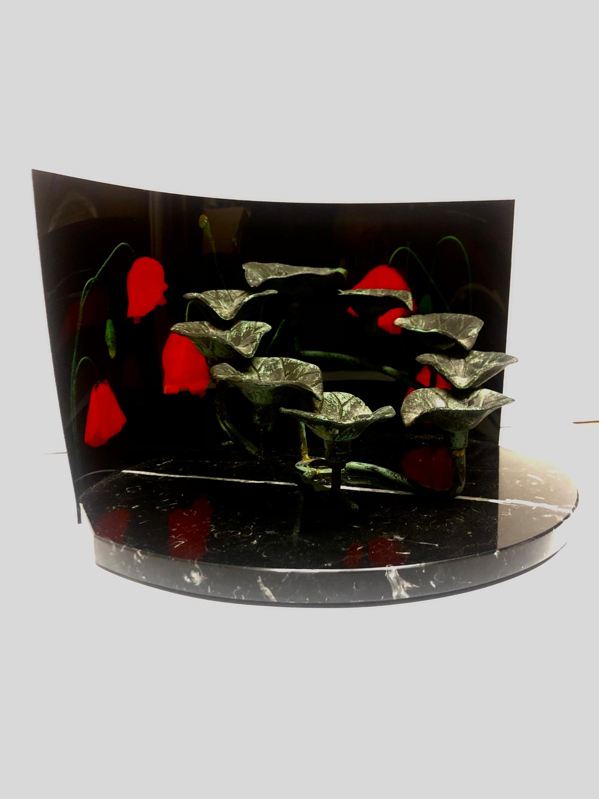 “L’arte ci aiuta a far risplendere le nostre idee, le nostre azioni, a farsi messaggio dei valori della conoscenza, della luce contro le tenebre e ad allontanare la paura del diverso. – anticipa Daria Carmi parlando dell’opera – La lampada di Giorgio Griffa sarà presentata in un contesto intimo, che lascia spazio al dialogo e alla riflessione: si tratta di un candelabro solido, grezzo nei materiali ed elegante nelle proporzioni, che ci raccontai l’armonia delle parti. L’allestimento sarà meditativo, in un’evocativa penombra, perché una piccola fiamma illumina ancora più intensamente in un grande buio, e una voce sottile si sente solo nel silenzio”.