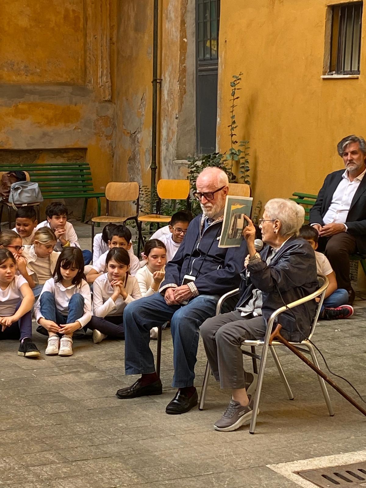Una cerimonia emozionante che ha visto la presenza del dirigente scolastico dell’Istituto Comprensivo Virgilio Alessio Santagati, il presidente del Consiglio d’Istituto Gianfrancesco Fidone, il presidente del Comitato genitori Mario Castagna, la vicepresidente del Municipio Roma I Centro Alessandra Sermoneta, l’assessore alla Memoria del Municipio Roma I Adriano Labbucci, la vicepresidente della Comunità ebraica di Roma Antonella Di Castro, professori e studenti delle classi IV, V elementare e della I media. Presenti anche alcuni parenti dei bambini espulsi nel ‘38, insieme agli ospiti d’onore Pupa Garribba e Ugo Foà. Entrambi hanno raccontato la loro testimonianza e Garribba ha anche mostrato la sua pagella – esposta in via Tasso – con la quale da privatista di “razza ebraica” ha sostenuto gli esami nel “XX anno dell’era fascista”. Ugo Foà ha raccontato: “Avevo 10 anni e dovevo andare in prima media quando i miei genitori mi hanno detto che non potevo perché il governo fascista aveva emanato una legge che vietava ai bimbi di religione ebraica di andare a scuola. Come ho reagito? Ho pianto: mi sono sentito strappato dalla scuola”.