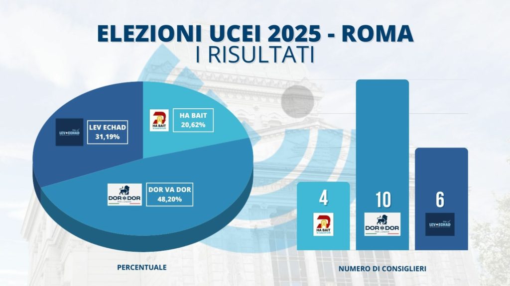 Pubblichiamo di seguito i risultati definitivi delle elezioni per il rinnovo dei consiglieri di Roma all’Unione delle Comunità Ebraiche Italiane.